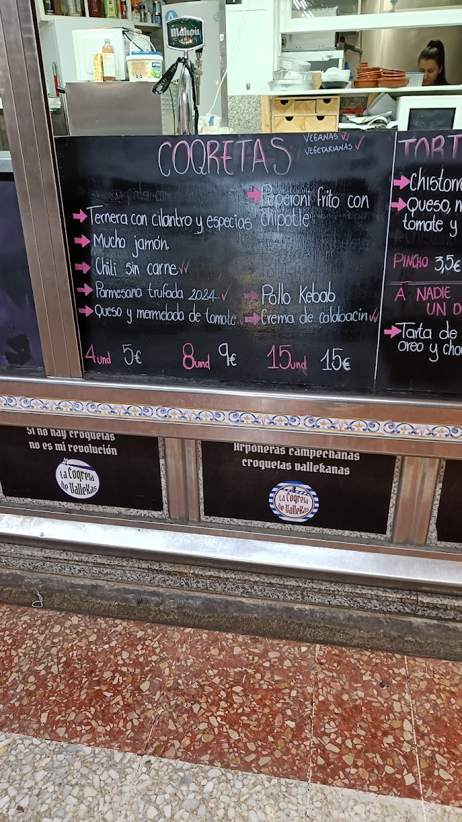 Welcome to La Coqreta de Vallekas, a hidden gem located in the bustling Mercado de Numancia in Puente de Vallecas, Madrid. Specializing in delectable coqretas, or unique croquettes, this eatery captivates diners with its creativity and quality. Guests rave about the vibrant Parmesan, caramelized tomato, and basil tortilla, a must-try, while the homemade croquettes showcase rich flavors and crunchy textures, despite some occasional temperature issues.